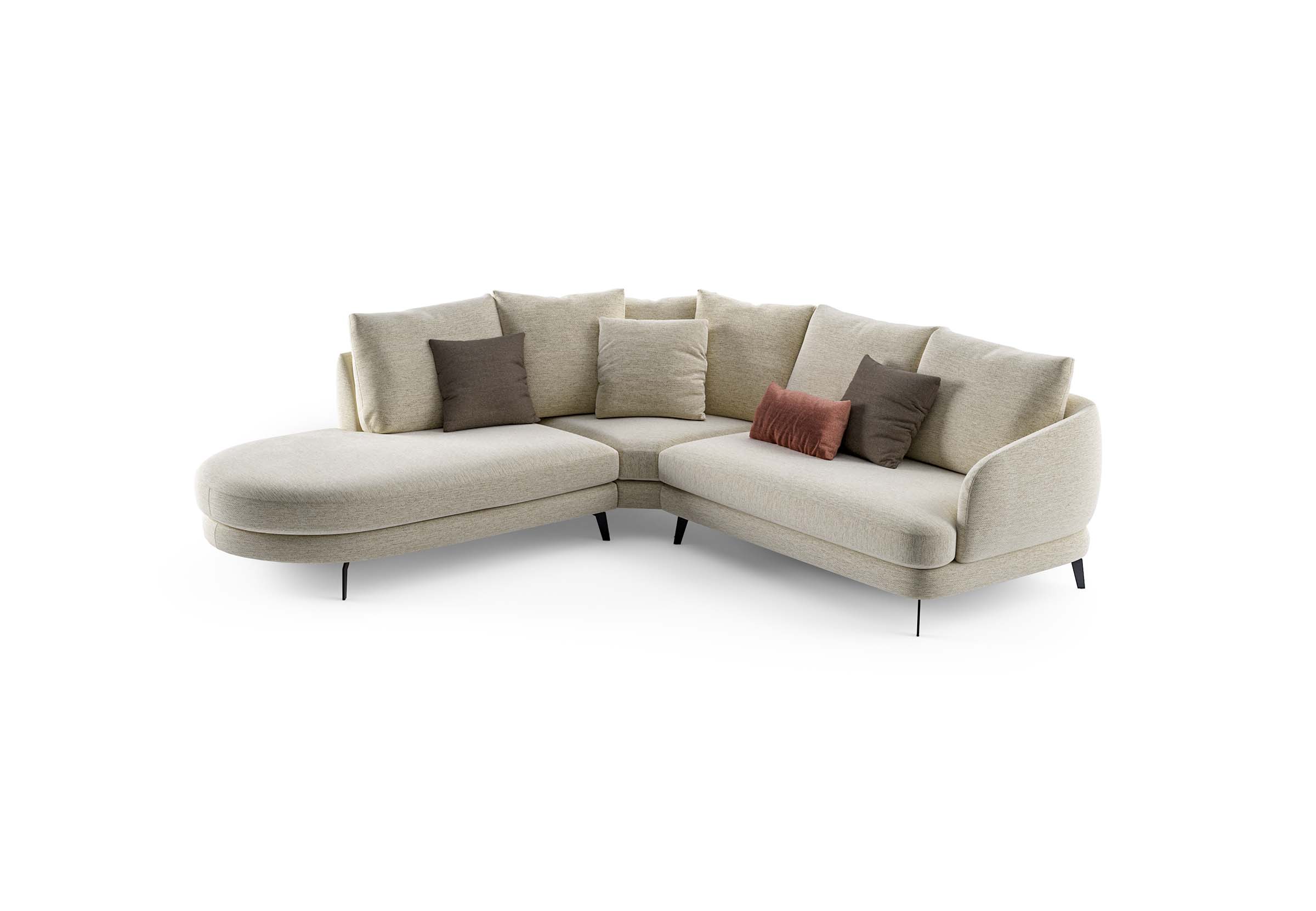 In addition to the infinite modularity, which has always been a distinctive feature of LeComfort models, Sofà Premiere introduces the possibility of integrating sections that break up the linearity and bring dynamism to the environment, creating a unique visual balance.